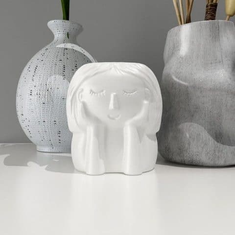 A unique mold with a girl design with face, mouth and lip for candle or vase.